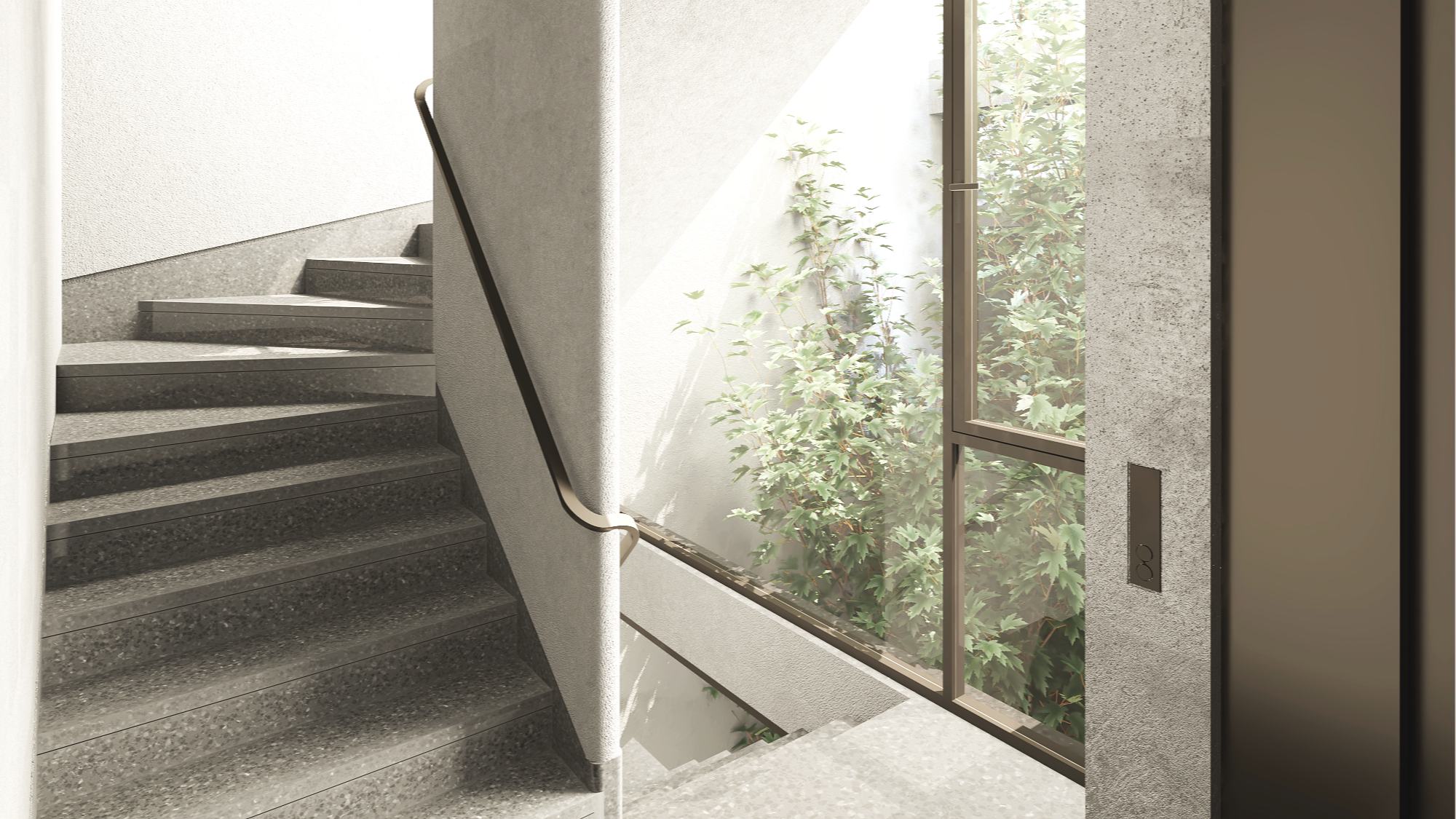 A fluid façade design that blends sculpted curving balustrades with transparent glass, creating a sense of flow as the building is experienced from both the street and the garden.